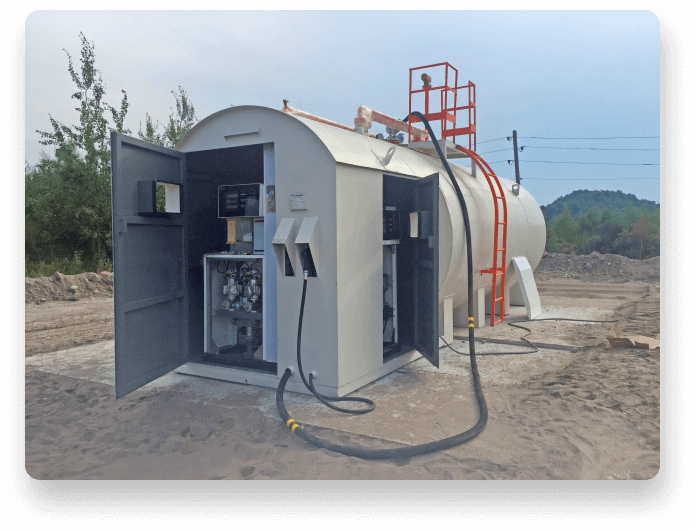 Для предприятий с большим автопарком и высоким ежедневным проливом топлива, можно установить Модульную АЗС т.к. для этого вида АЗС в соответствии с СП 156.13130.2014 разрешается использовать резервуар для хранения топлива до 120м3. Этот вид АЗС характеризуется тем, что резервуар и топливораздаточная колонка разнесены на расстояние более 9 метров.